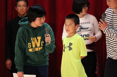 劇や音楽のほかに、係の活動の動きも、しっかりチェックしました。