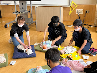 中標津町子育て支援室、児童館のスタッフの皆様にご協力をいただき、「赤ちゃん交流」を実施しました。 人形を使っておむつの交換や抱っこの仕方などを教わりながら、命の大切さや自分を育ててくれた親に改めて感謝する時間となりました。